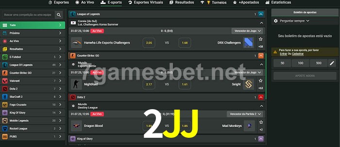 O 2JJ oferece uma grande seleção de opções de apostas em e-sports com probabilidades competitivas